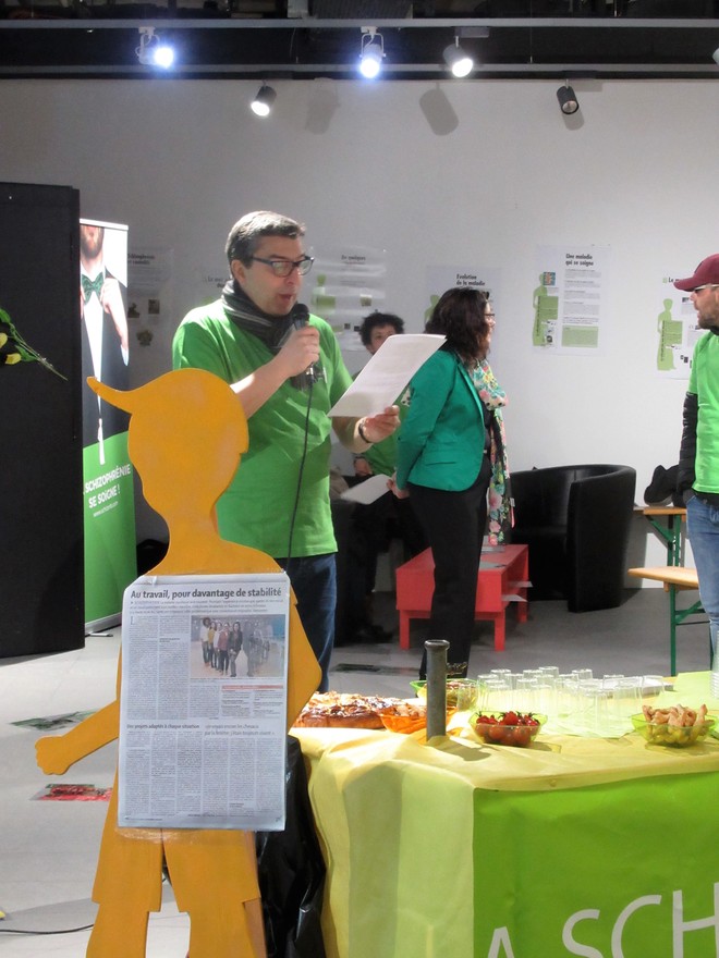 A 11h00 Jean Charles Mouttet, responsable du Rencar et membre du comité jurassien présente avec brio les buts des Journées de la Schizophrénie 2018,